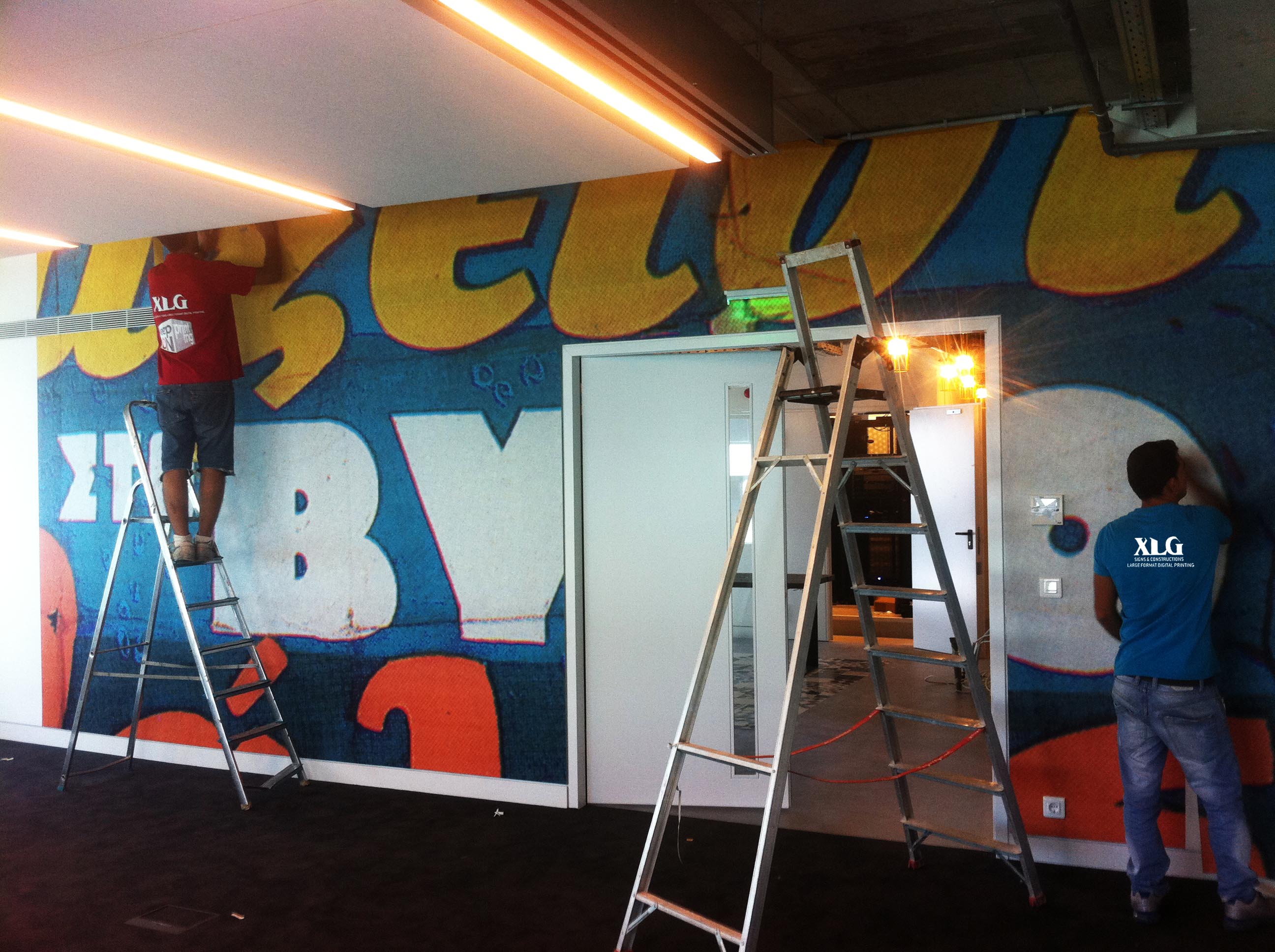 Our project at Google Hellas offices started with a very amusing way. We were asked to produce and install photo wallpapers in all the meeting rooms. The amusing element in this was that the themes were items from posters of the old Greek and foreign cinema. We recalled films like “Stella”, “For whom the bell tolls” and many more. The colors had to be vivid and give some playfulness, just like the entire structure of Google offices is. We were also requested to create the company’s logo with 3D embossed lettering at the entrance. The pleasant surprise for us was that the lettering had to be different from the classic Google logo.